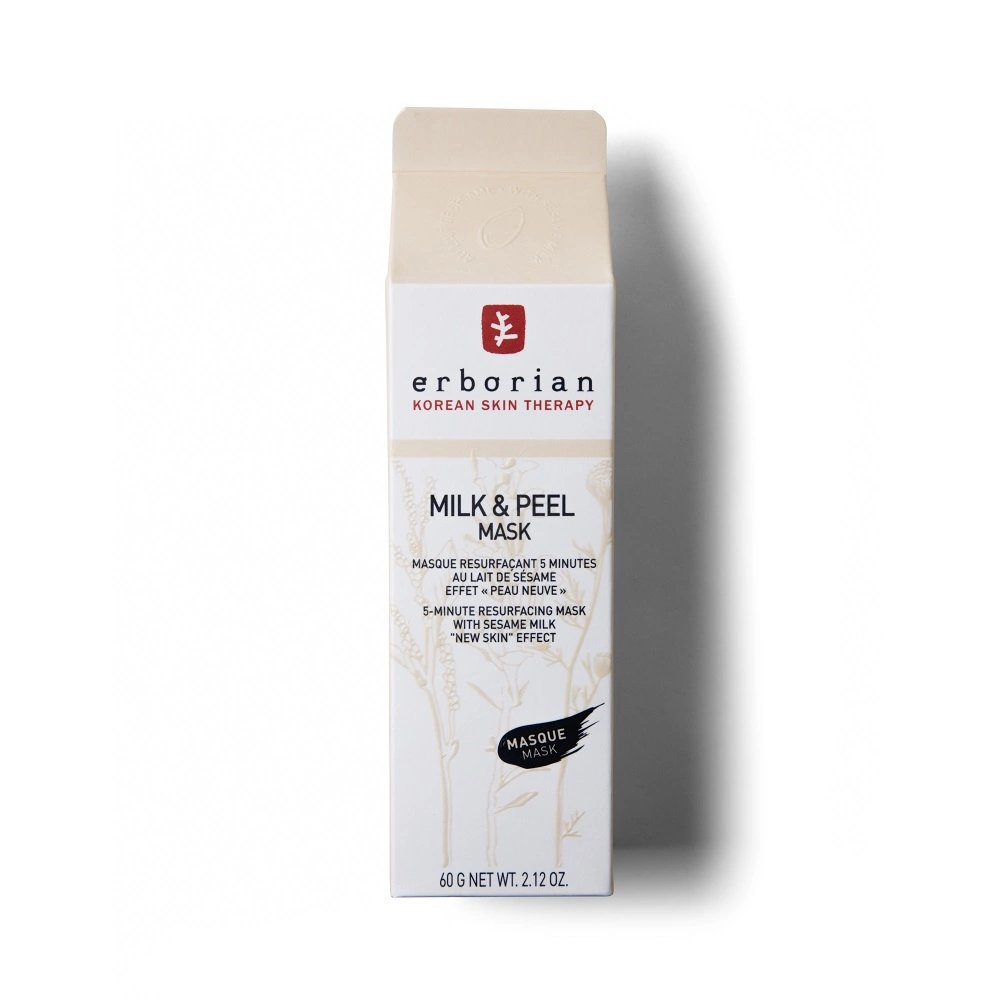 MILK & PEEL MASK: una maschera peeling viso illuminante per un effetto “”pelle rigenerata”” e un incarnato più luminoso in soli 5 minuti! Formulata con enzimi esfolianti e latte di sesamo, noto per la sua capacità di levigare la superficie della pelle, MILK & PEEL MASK esfolia ed elimina delicatamente le cellule morte dalla pelle. Arricchita con olio di sesamo, noto per il suo contenuto di grassi, la maschera aiuta a nutrire la pelle, offrendo una sensazione di comfort.